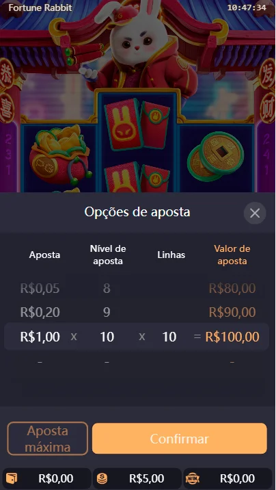 Jogar Fortune Rabbit não tem segredos! Tanto iniciantes quanto jogadores experientes podem desfrutar desta diversão sem complicações, em uma experiência acessível e agradável. A cada novo giro, surgem oportunidades de vitória, o que torna as sessões do Jogo do Coelho jogo ainda mais empolgante.